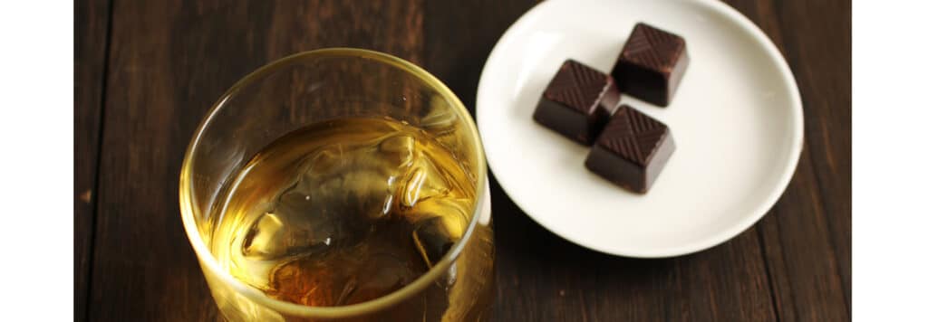 チョコレートを口の中でゆっくりと溶かし、半分くらいになったところでウイスキーをひと口。液体と固形物が混ざり合い、とろけるような幸福感を味わってください。