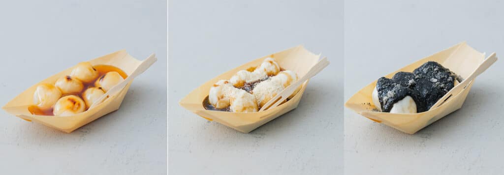 みたらしや黒蜜ときな粉、またごまだれを
