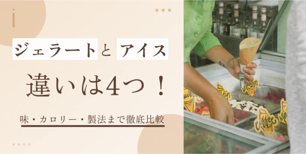この記事では、ジェラートとアイスクリームの4つの違いをわかりやすく比較し、ジェラートとシャーベットの違いや日本のアイス分類まで幅広くお伝えしていきますね。