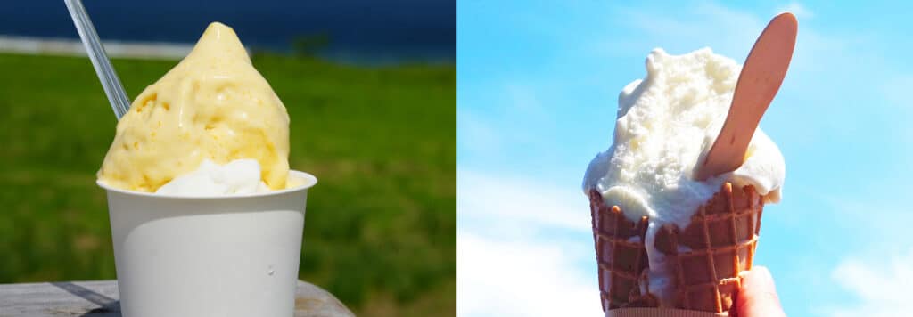 ソフトクリームはアイスクリームの一種で、マイナス5〜7℃のやわらかい状態で提供されるできたてのスイーツです。