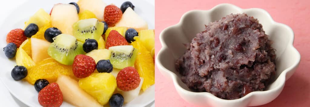 キウイ・パイナップル: 酸味の強い果物が、意外にもお餅の甘さを引き立てます。