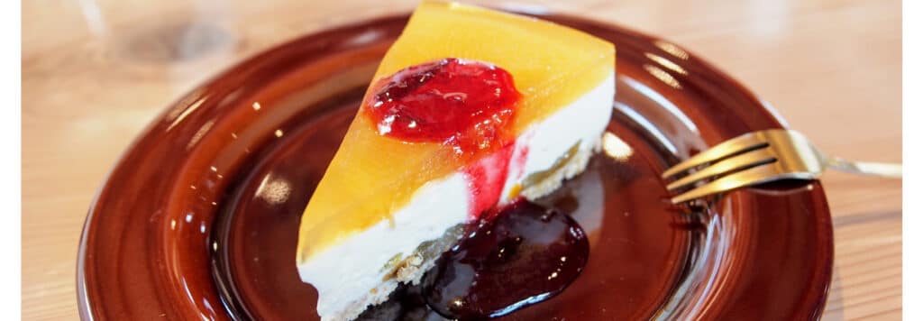 梅のレアチーズケーキ: チーズのコクに梅のジャムが加わると、驚くほど後味がさっぱり!