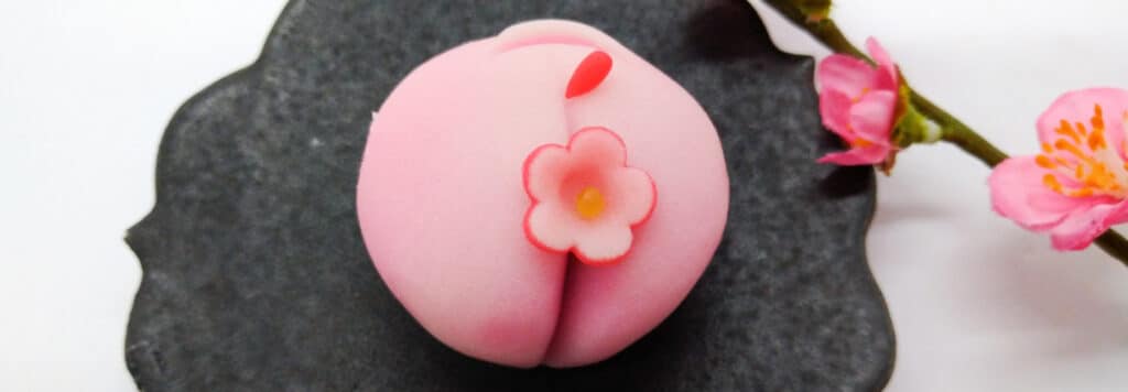 和菓子屋さんの店頭で見かける、梅の花を模した練り切り。