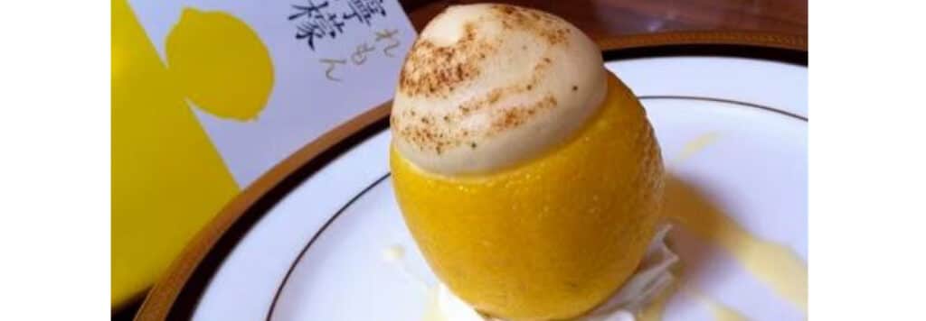 ひと際インパクトがあるレモンを丸ごと使ったスイーツ「檸檬」は、梶井基次郎の檸檬にちなんだケーキです。小説「檸檬」の舞台になった書店が京都の丸善だそうです。爽やかな酸味と上品な甘さが特徴。文学の香り漂う店内で、至福のひとときを過ごせます。