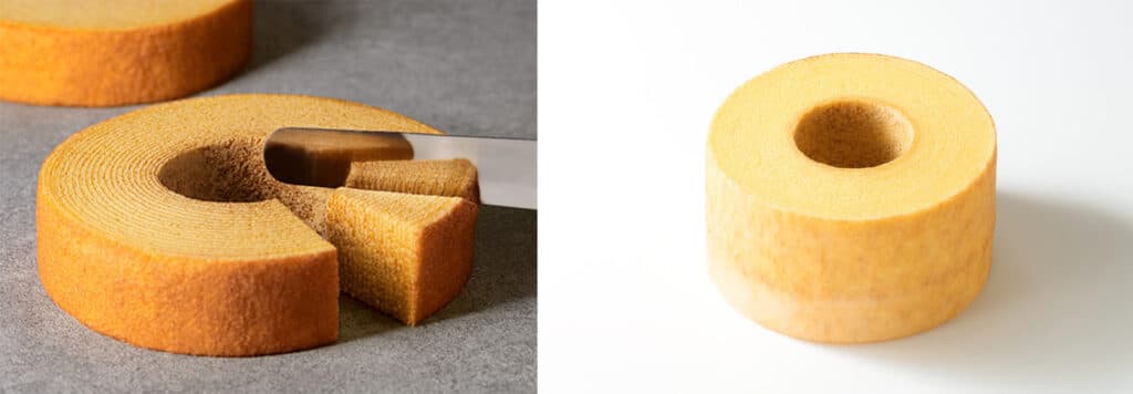 バウムクーヘンは「年輪」を意味するドイツの伝統菓子で、結婚式の引き出物にも定番のギフト向け焼き菓子です。